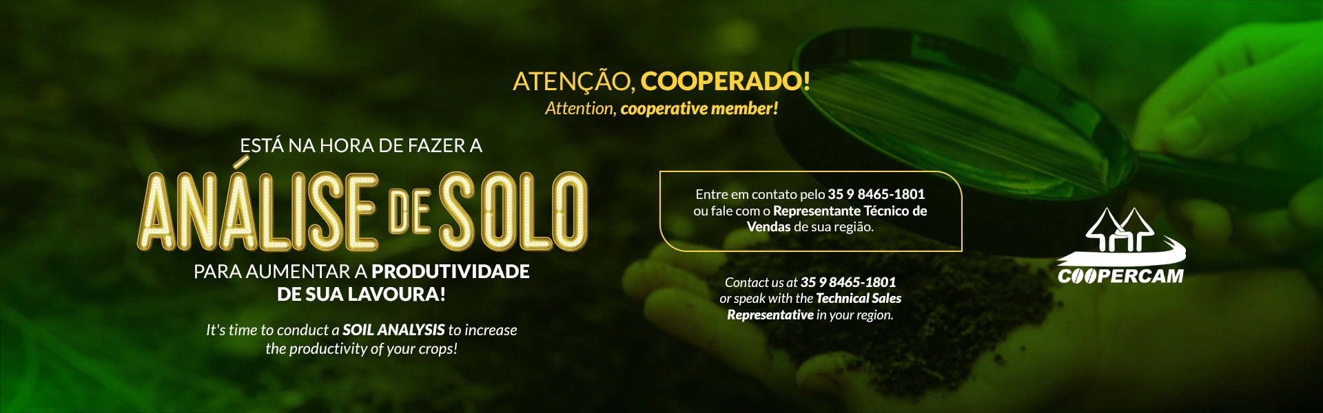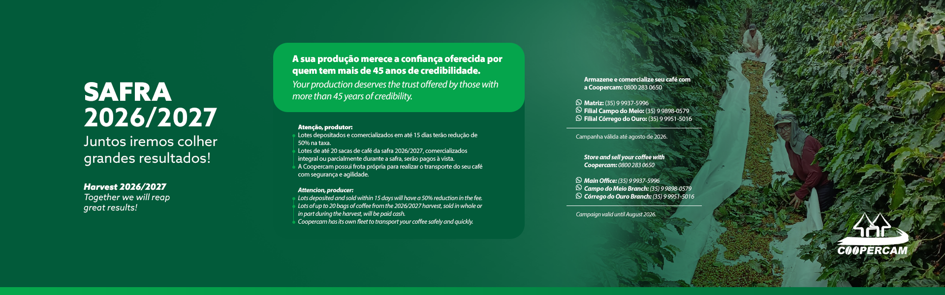 A Coopercam, em mais de 45 anos de atividades, apoia seus cooperados por meio de orientações sobre os cuidados com a lavoura, palestras técnicas, dia de campo, viagens técnicas e todo suporte necessário no campo, e com a difusão de novas tecnologias para produção de café com maior rentabilidade e qualidade.